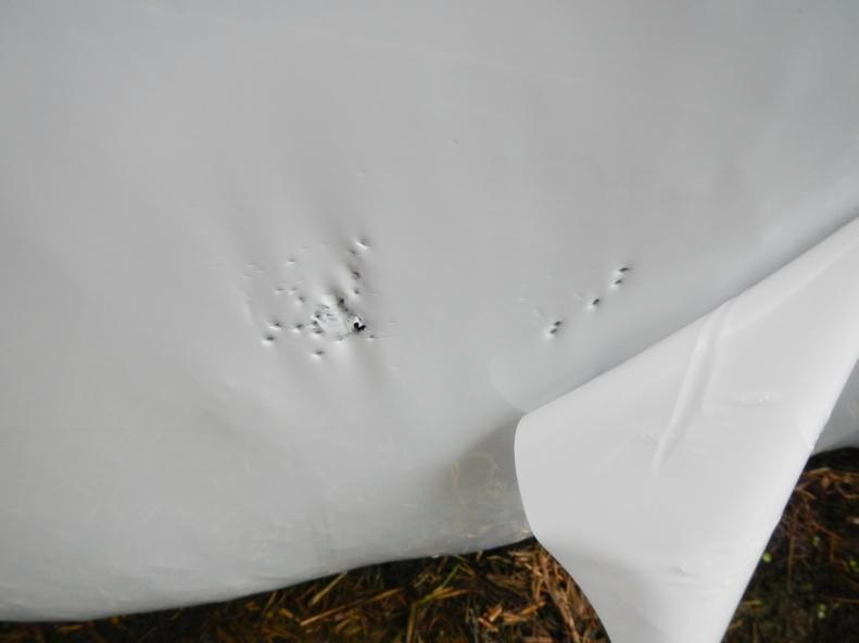 チューブバックに防鳥ネットを直接被せたが・・・⇒ネットの上から穴が・・・つつかれて効果なし