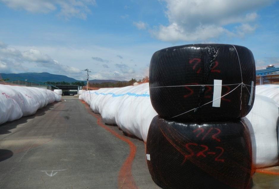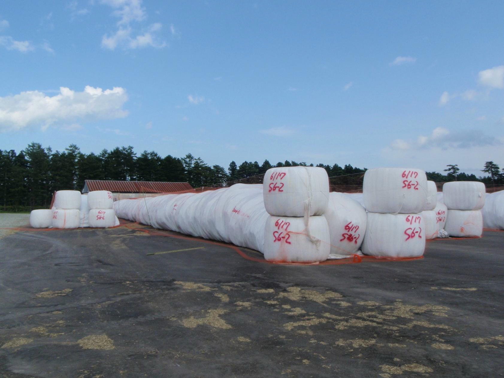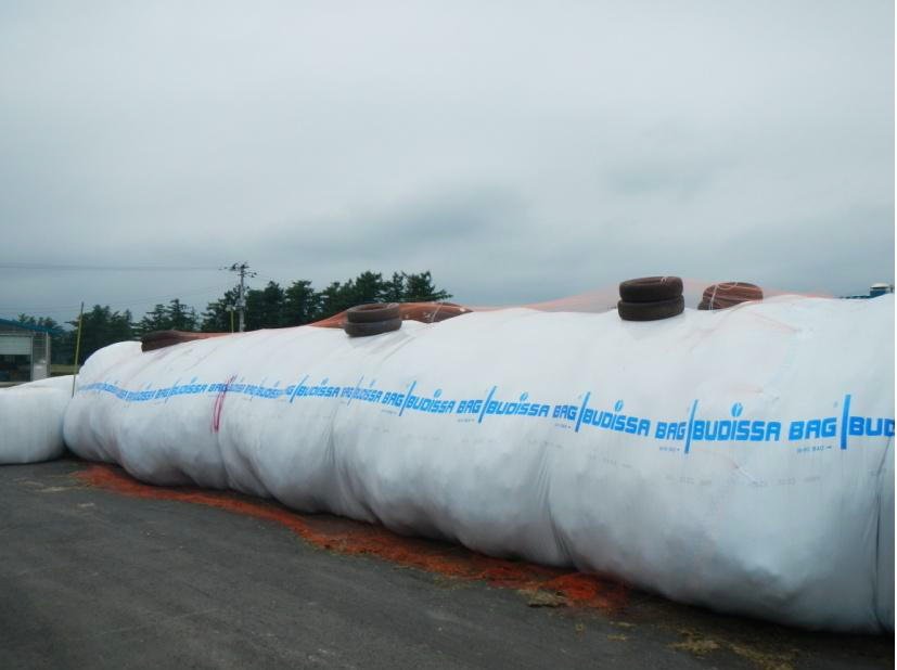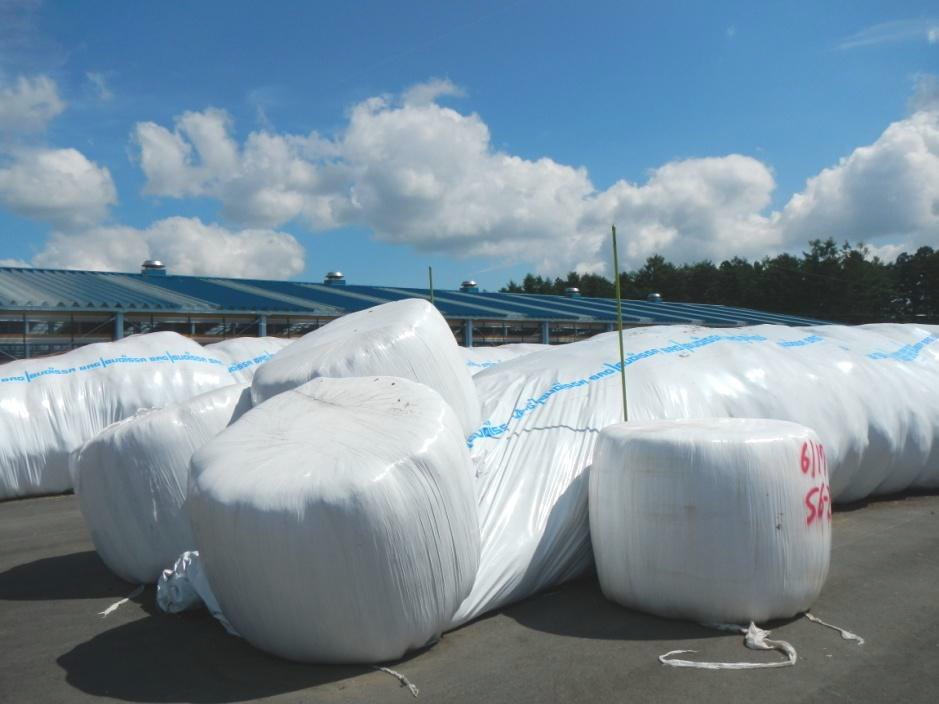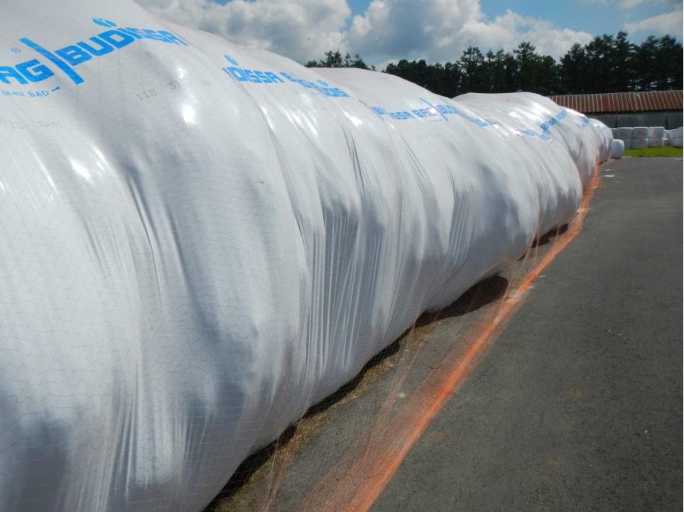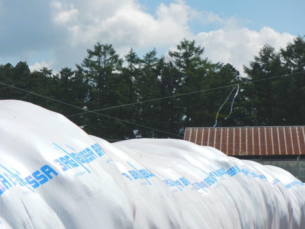 最後に、ラップ乾草やタイヤを利用し、防鳥ネットを浮かせてチューブバックから離して設置した結果、カラスの被害がなくなりました。