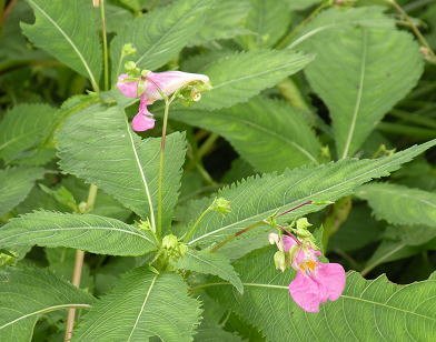 ツリフネソウ(釣舟草)(牧草地の水路脇)