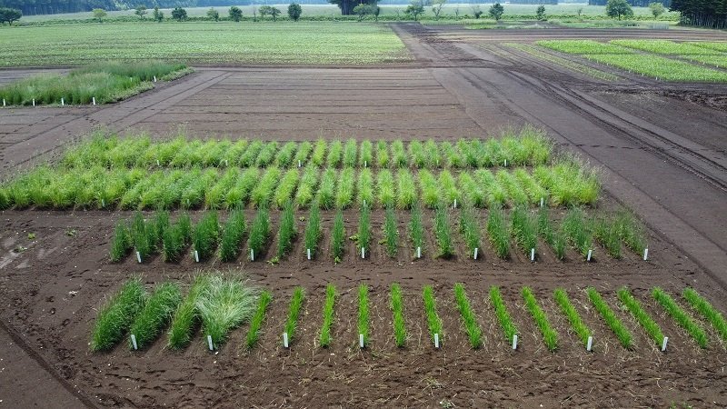 家畜改良センター十勝牧場種苗課では、白樺並木の近くに牧草の見本園を展示しています。