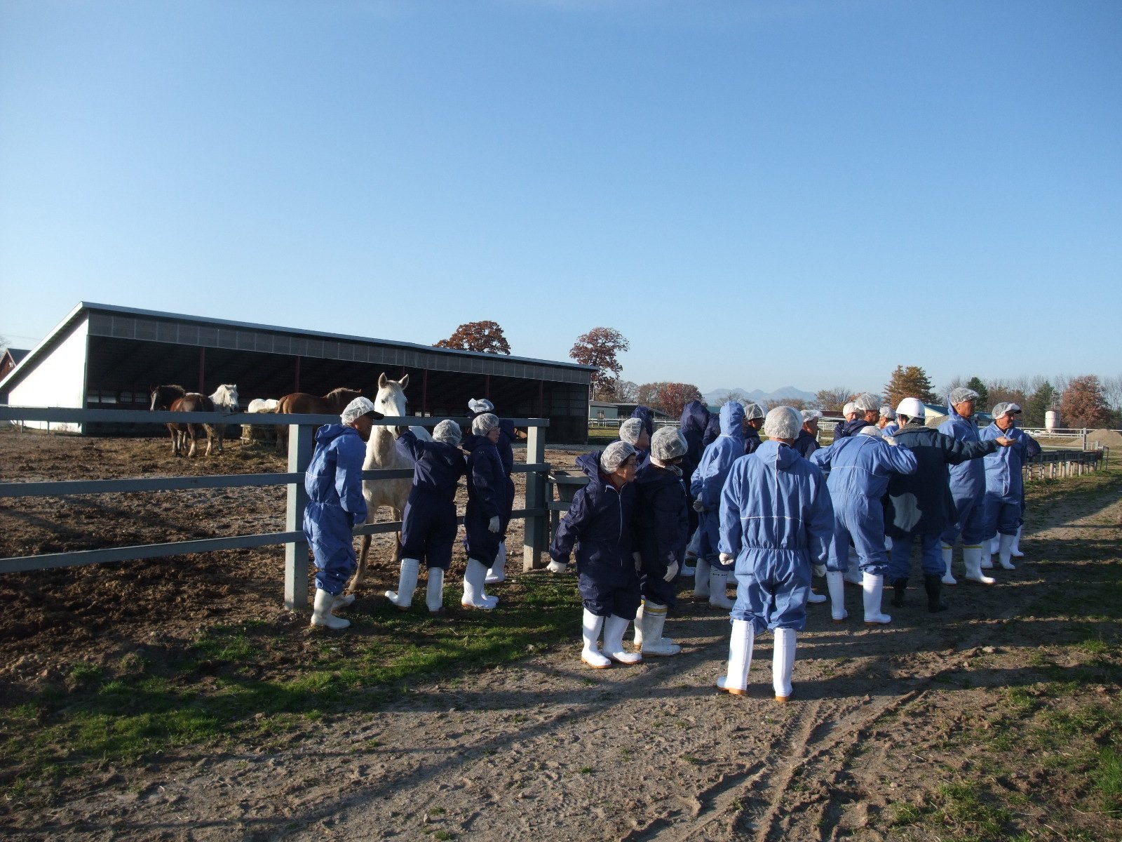馬の元生産者他からなる北見市の三区喜楽会の方々24名が10月26日来場され、育成馬や種雄馬など見学されました。「十勝牧場から配布された種雄馬を飼育していた。」など、思い出のエピソードなども伺うことができました。