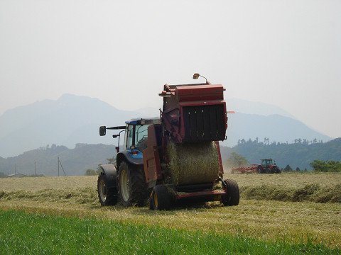 鳥取牧場では飼養している牛に給与する粗飼料生産を行い、粗飼料自給率は100%となっています。主要作物は、イタリアンライグラス、トウモ ロコシ、混播牧草(オーチャードグラス主体)です。